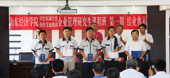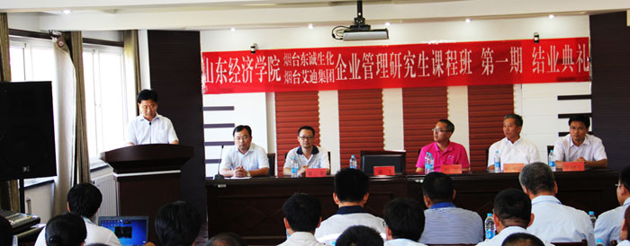 钟灵毓秀,草长莺飞, 8月24日山东财经大学与尊龙凯时人生就是搏集团、烟台东诚生化企业管理在职研究生课程培训班结业典礼在我司隆重举行。山东财经大学工商管理学院刘军院长、山东财经大学工商管理学院中国传统智慧与现代管理研究所所长黄少英教授、山东财经大学工商管理学院市场营销教研室副主任毕继东教授、尊龙凯时人生就是搏集团宋飞董事长、烟台东诚生化由守谊董事长等领导出席了本次典礼。