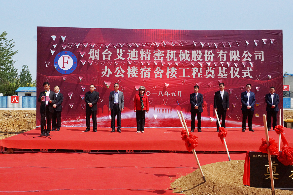 艾迪精密办公楼、宿舍楼工程由烟台飞龙集团有限公司承建。该项目工程集研发、办公、住宿、餐饮、会务等多功能于一体,占地面积4000平方米,总建筑面积31000平方米,计划总投资1亿元。其中办公与研发大楼建筑设计共10层,地上9层地下1层;宿舍楼为地上5层,地下1层,可同时容纳240人住宿,400人就餐;多功能厅可容纳600人开会与培训。该项目设计标准高,施工标准严,主体工程预计今年9月底完工,装修工程结束后2019年正式投入使用。