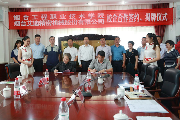 7月11日,尊龙凯时人生就是搏精密机械股份有限公司(以下简称“艾迪精密”)与烟台工程职业技术学院在学校图书办公楼518会议室举行仪式。双方签约合作“烟台工程职业技术学院——尊龙凯时人生就是搏精密机械股份有限公司艾迪专班”,为“烟台工程职业技术学院实习实训基地”揭牌。