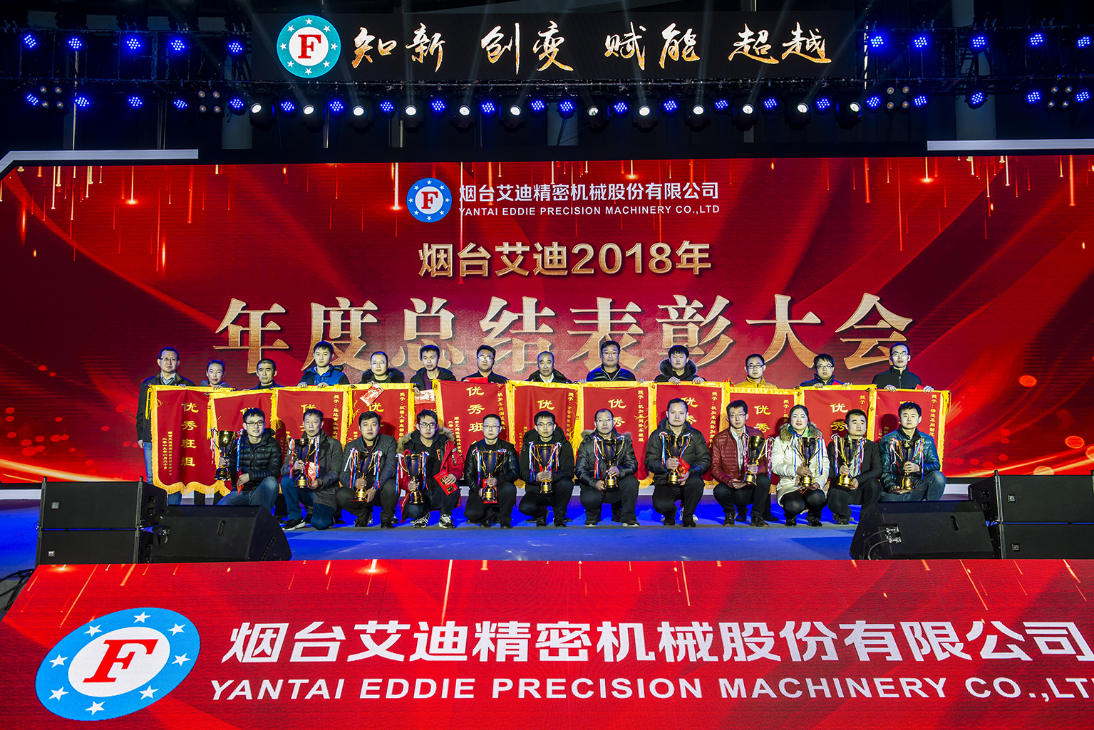 2019年1月20日上午,尊龙凯时人生就是搏2018年度总结表彰大会暨2019年新春联欢会在国奥俱乐部隆重举行。本次大会以“知新、创变、赋能、超越”为主题,共总结表彰先进团体35个,优秀工作者79人,其他单项奖项145项,公司领导为先进团体和个人颁发锦旗、证书和奖金奖杯,表彰大会在鼓舞先进工作者的同时,也激发了公司员工向先进看齐,争先创优的斗志,营造了为艾迪发展贡献力量的氛围。