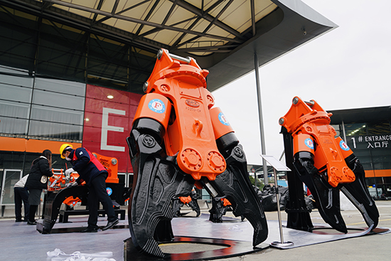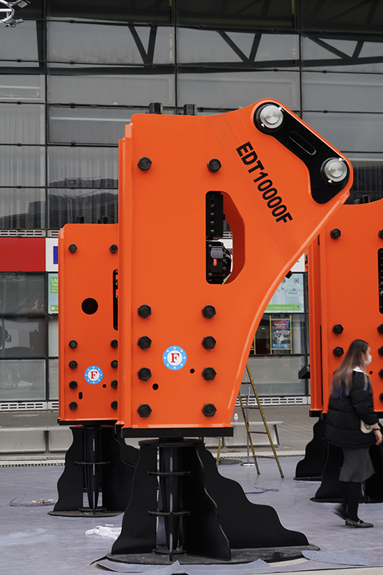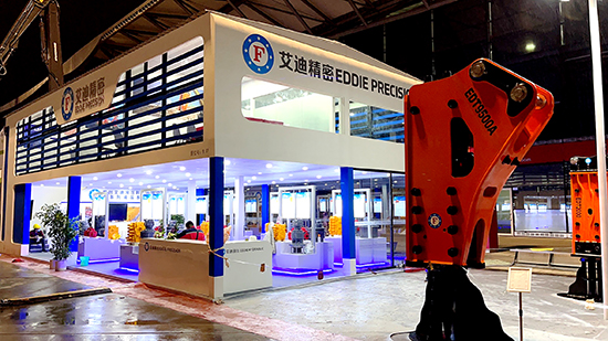 24日上午展会一开场,艾迪精密展区前便围满了前来参观的厂商代表。以本次展会为契机,艾迪精密带来了9000F和10000F等重磅液压破碎锤,充分展现了中国制造高端形象,令参观厂商代表惊叹不已。