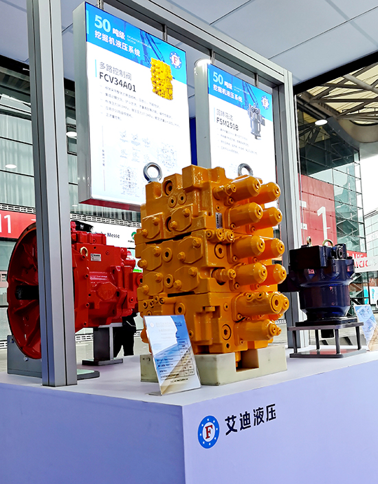 艾迪液压则展示了1.5-50T十余套液压系统,延续着高性能、高性价比的家族基因。极具看点的液压系统解决方案,主泵、多路控制阀、行走马达和回转马达,充分为客户着想,努力实现客户的设备价值、使用效率以及生产力最大化。