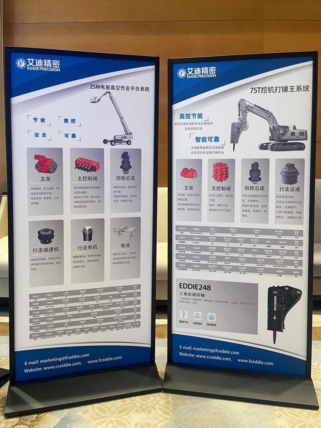 在此次活动中,艾迪精密设置企业展示区,对25M电驱高空作业平台系统、75T挖机打锤王系统进行了重点展示与介绍。